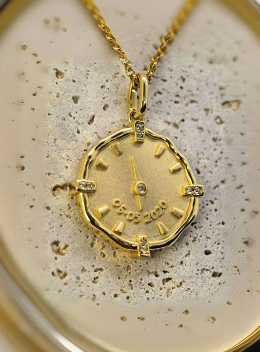 The Classic Birthtime Clock Necklace | Frosted Finish | Rolo Chain